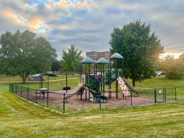 The original playground stood atop a bed of mulch in the middle of a field located outside the Hensle Health Center. It was enclosed by a black fence that has remained untouched throughout the renovation.