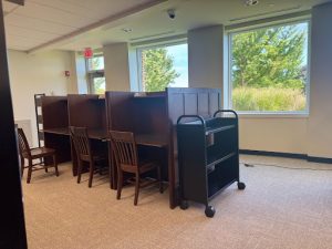 The removal of those shelves has given the library a more open feel overall, as does the farther spacing out of the three clusters of couches and chairs in the middle of the floor. That being said, the loss of storage space has made this past year’s book “weeding” slightly more substantial. 4,000 titles were discarded and donated from the library’s inventory this year, more than doubling the annual average of 1,200 to 1,500 titles.